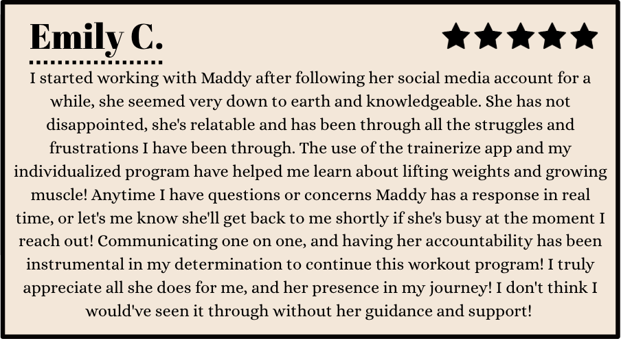 Real results. Real people. Don’t just take my word for it, hear directly from clients who have built strength, confidence, and sustainable habits through my coaching. These reviews reflect real experiences, real progress, and real change!